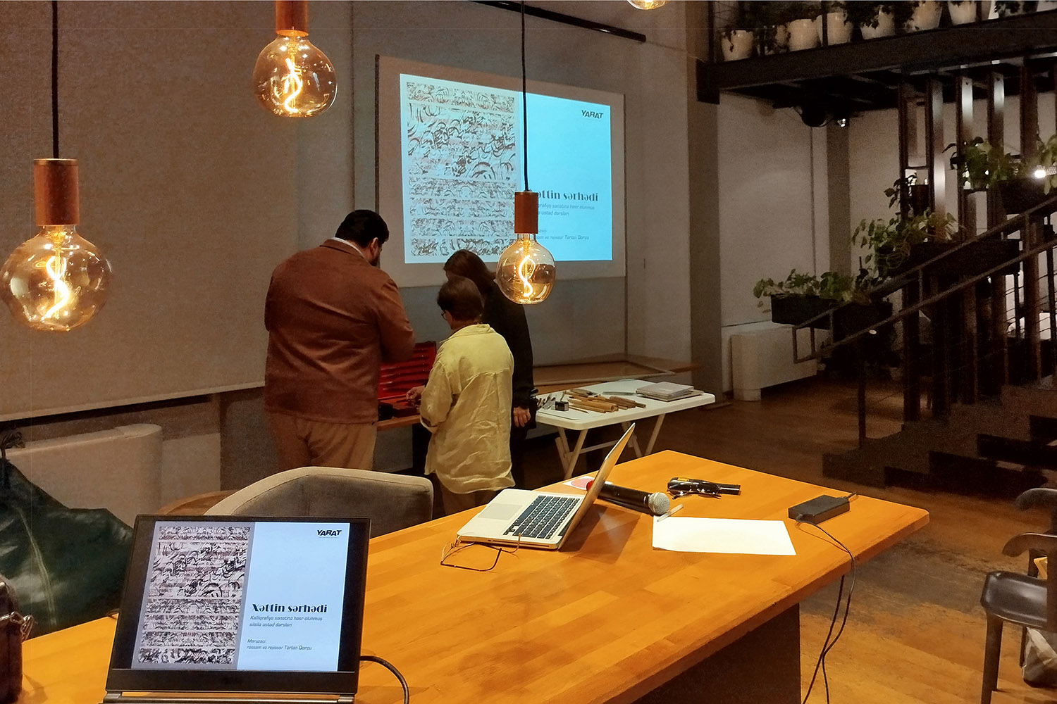 YARAT Müasir İncəsənət Məkanında kalliqrafiya sənətinə həsr olunmuş silsilə ustad dərsləri keçirildi. Dərslər bu sənətin tanınmış ustası, eyni zamanda Bakı Marionet Teatrının yaradıcısı və rəhbəri, rejissor və rəssam Tərlan Qorçu tərəfindən qurulub aparıldı. Mühazirə və praktiki məşğələ formatında keçirilmiş bu ustad dərsləri T.Qorçunun öz əsərlərinin də nümayış olunduğu “Mən və Nuhun gəmisi, Mən və dünya tufanı” adlı qrup sərgisi çırçivəsində YARAT tərəfindən təşkil olunmuşdu.