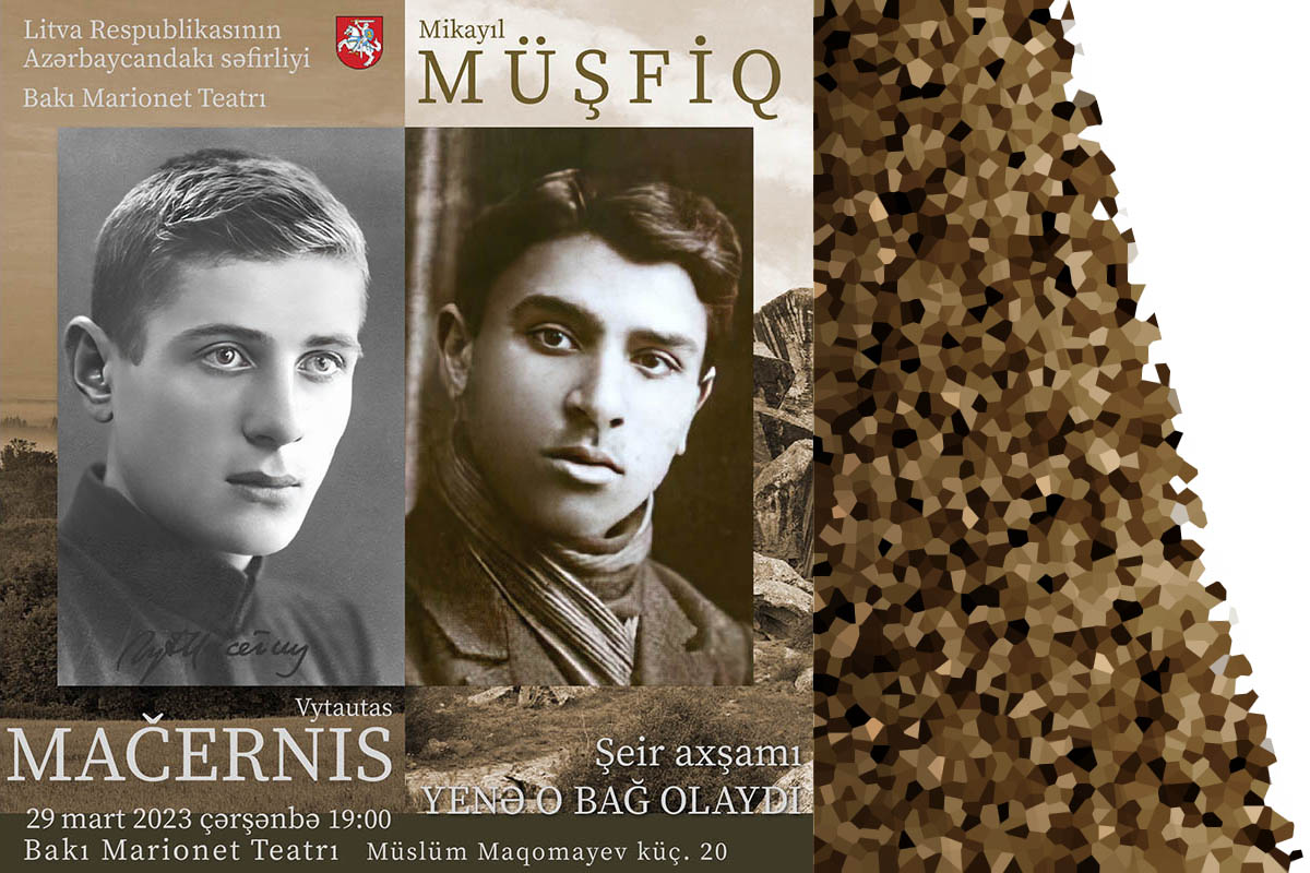 Bakı Marionet Teatrında Litva şairi Vitautas Maçernis (1921-1944) ilə Mikayıl Müşfiqin (1908-1938) yaradıcılığına həsr olunmuş “Yenə o bağ olaydı” adlı möhtəşəm poeziya axşamı keçirildi. Litva Respublikasının Azərbaycandakı Səfirliyi tərəfindən hazırlanmış bu tədbirdə iki ölkənin müasir şairləri də iştirak etdilər. Səslənən şeirlər və nümayiş etdirilən video-çarxlar tədbirə toplaşan qonaqlar tərəfindən böyük maraqla qarşılandı.